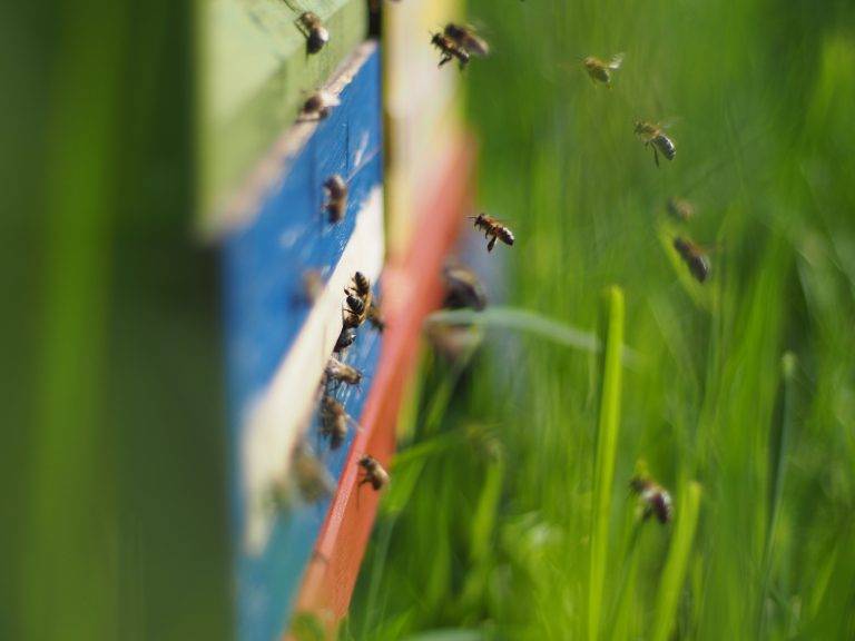 Auf der Streuobstwiese der Hans-Wendt-Stiftung leben viele Bienenvölker, die zwei externen Imker*innen gehören. Ab dem Jahr 2021 wird die Kinder- und Jugendfarm selber in die Imkerei einsteigen – an einem eigenen Farm-Volk lernen Kinder der „Bienengruppen“ die faszinierenden Tiere mit den unterschiedlichen Aufgaben im Jahresverlauf kennen.